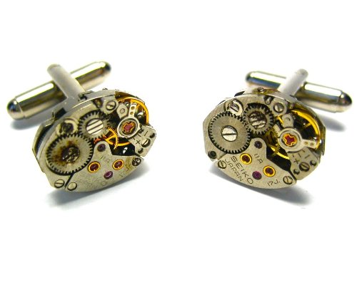These cufflinks featuring a Steampunk Watch Movement and are truly unique. They measure approximately 5/8 x 7/8 inch and are handmade with our signature bullet back settings. Please note that these cufflinks are made by hand and may vary slightly from the photo. Slight differences in the detail add to the uniqueness of our product and should be celebrated! This artist makes ridiculously cool cufflinks in the U.S.A.